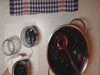 - Przechylam talerzyk i jeżeli gęstość dżemu mi odpowiada to zakręcam gaz i nakładam dżem do słoików a jeżeli nie to nadal smażę.